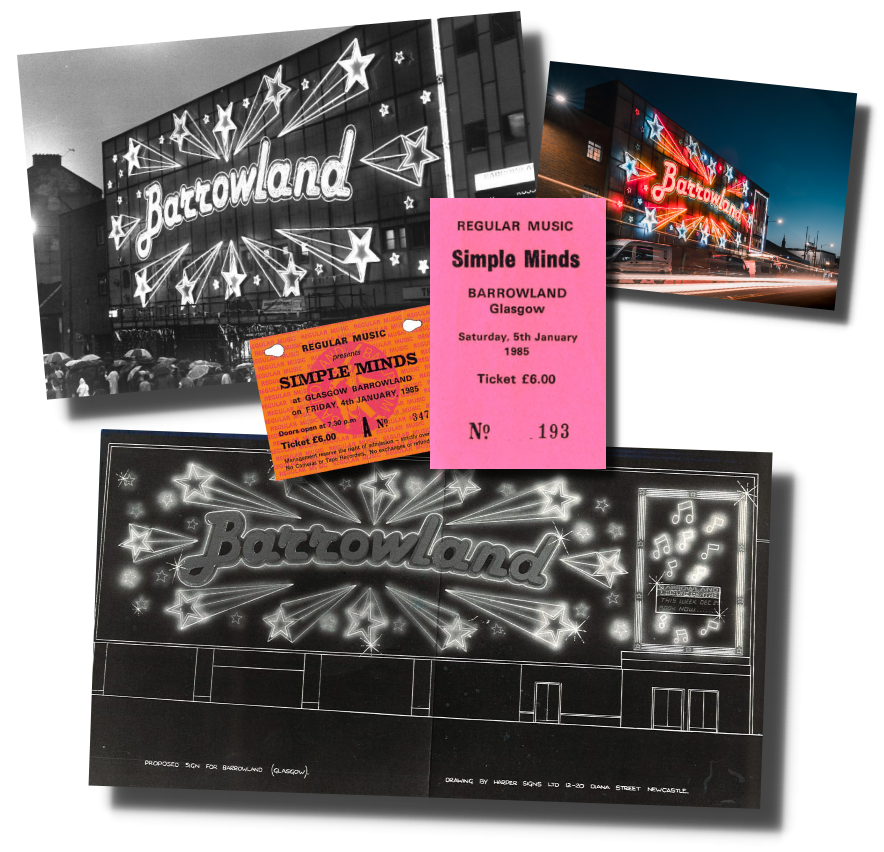 The ballroom was by this time in mothballs, the big band sound had passed, and the dance venue format had changed. Glasgow band Simple Minds were looking for a venue to film a video to promote a new single and Barrowland was suggested as it was lying empty doing nothing. The video was shot, complete with an invited audience of around 600 and Barrowland was proved ideal, and Barrowland began a new life as a gig venue, going on to become one of the best of its kind.