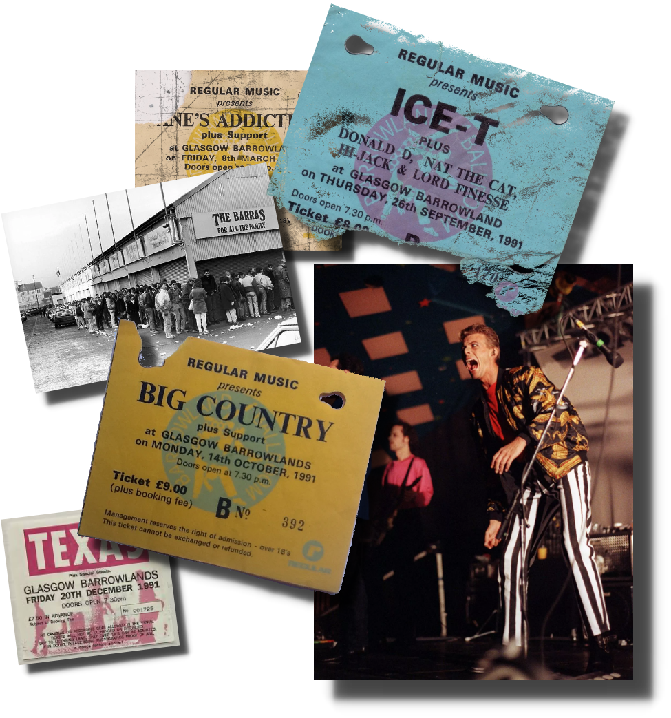 The Barrowland stage hosted a variety of artists, including Iggy Pop, Jane's Addiction, Lenny Kravitz, Alison Moyet, The Almighty, Debbie Harry, Ice-T, Big Country, James, Tin Machine, the Ramones, and Texas.